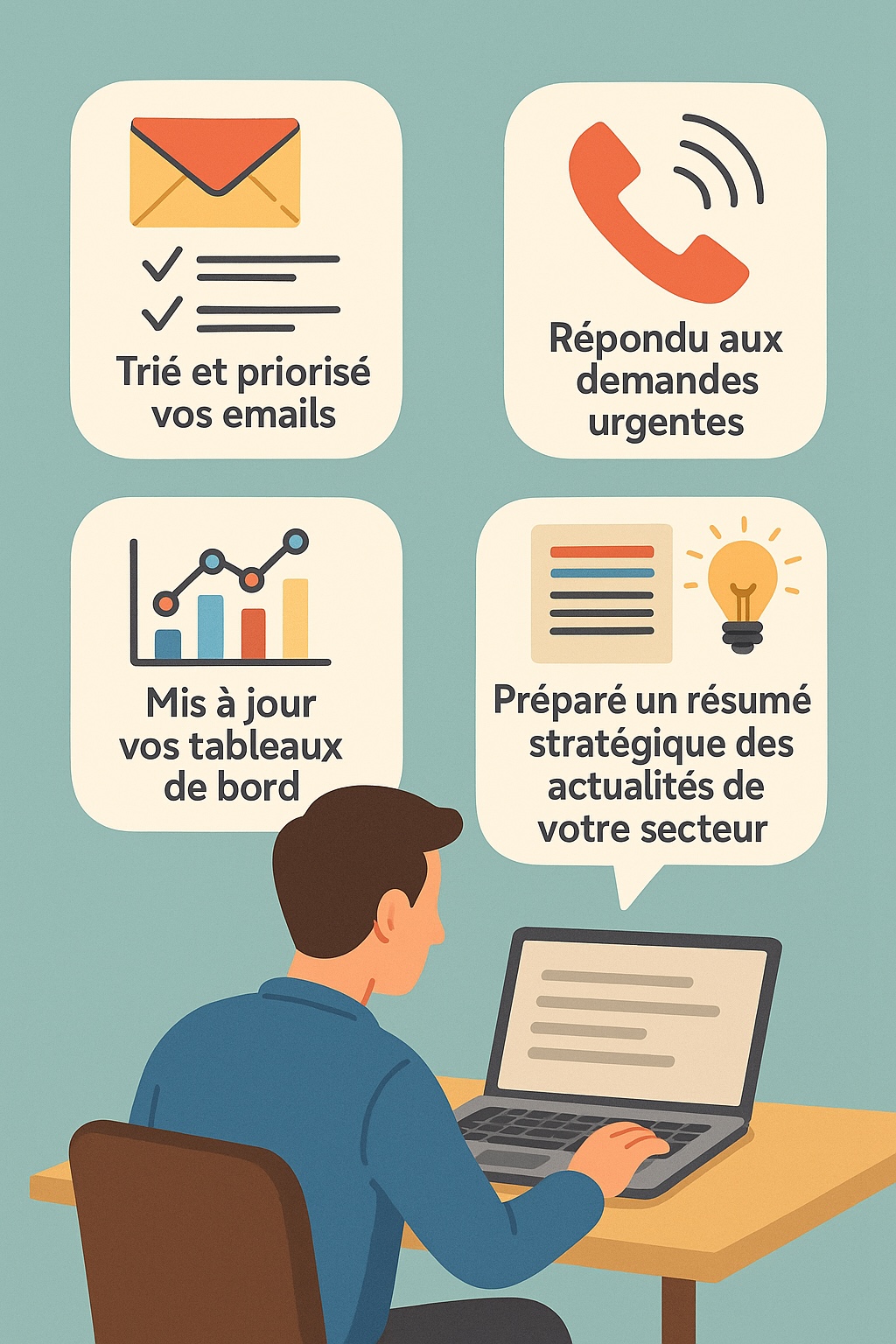 Un agent Web sert à plusieurs choses. Email, résumé, trié, mise à jour, tableau de bord, résumé, demandes urgentes